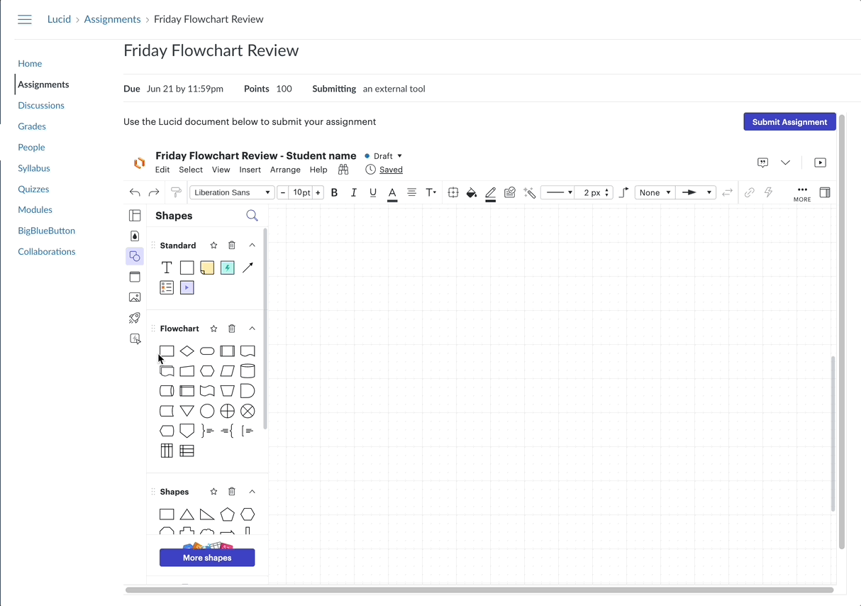 Students can now edit, comment, or view the Lucid document directly from the Canvas assignment, page, quiz, or discussion according to the permissions you set in Step 5.